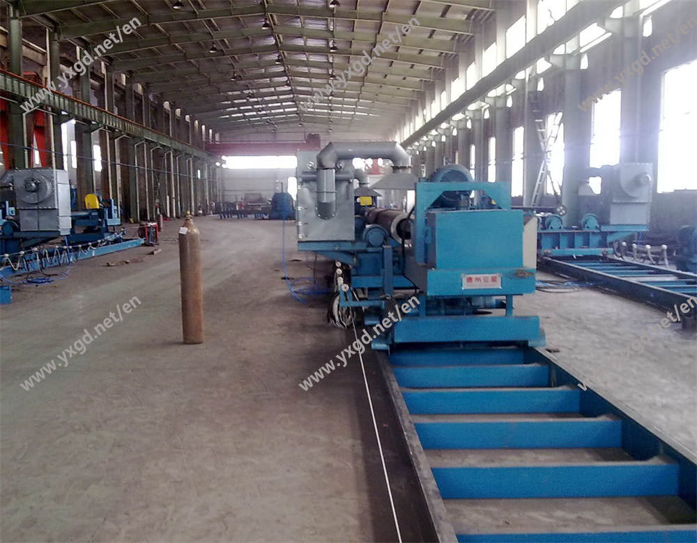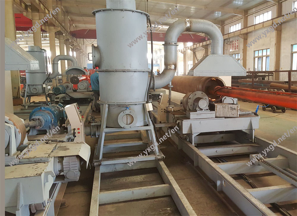 四、设备结构:底架道轨、磨头小车、钢管旋转辊道、湿式离心除尘装置(或干式除尘器)。