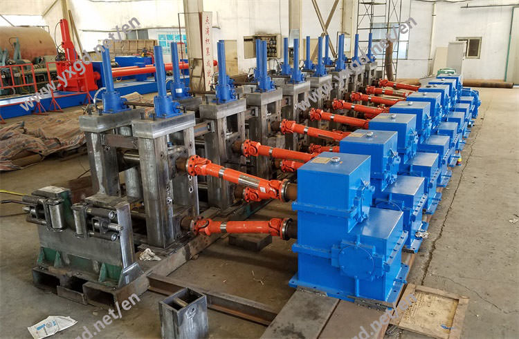 该机组由四台变形机架和一台矫直机架(土耳其头)组成并安装于同一平面基础上。