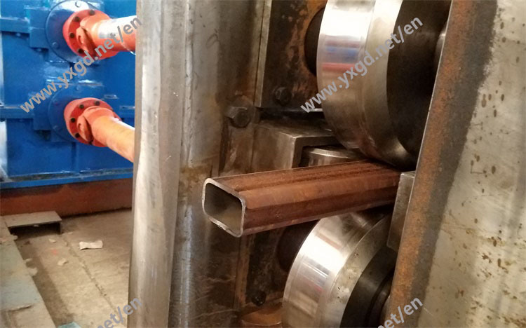 该设备采用水平辊、立辊对称于同一平面的万能机架与大推力液压推挤机组合的结构形式,解决了冷弯成形技术中制约异型钢管边长与壁厚的难题。该设备的产品比主动辊式机组和折弯机组的产品边长和壁厚增加了一至三倍。