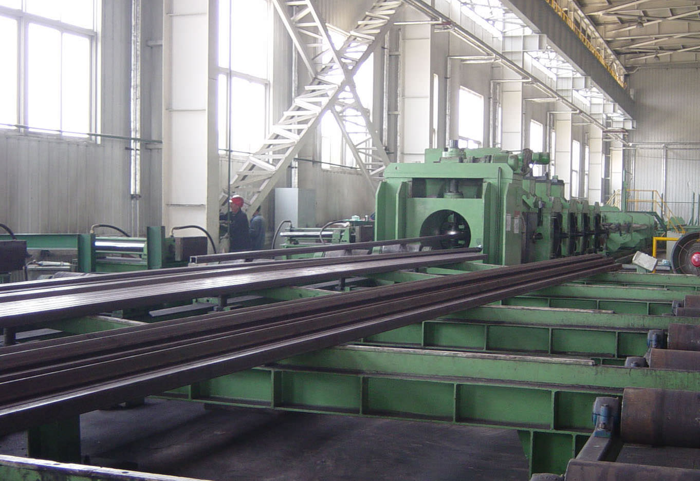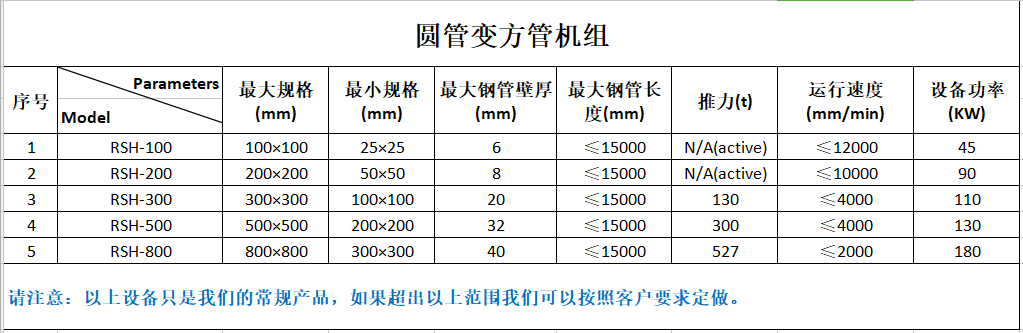 该设备采用水平辊、立辊对称于同一平面的万能机架与大推力液压推挤机组合的结构形式,解决了冷弯成形技术中制约异型钢管边长与壁厚的难题。该设备的产品比主动辊式机组和折弯机组的产品边长和壁厚增加了一至三倍。