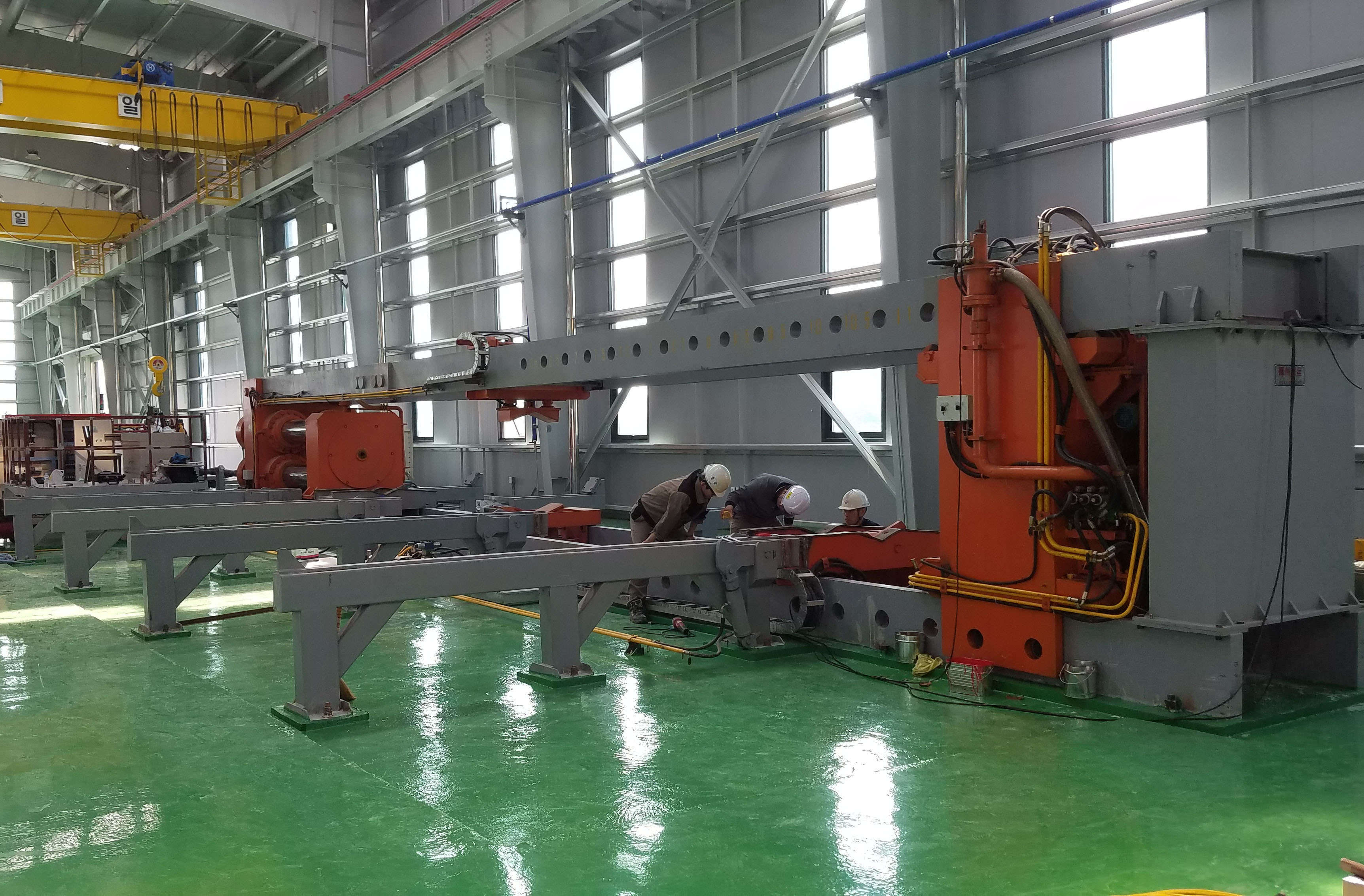 三、设备结构:设备机座、止推板、压紧推板、平衡压力大梁、主油缸压力机头、钢管托料装置、液压控制系统、电控柜、操作台(触摸屏)、水压控制系统、PLC编程智能控制系统等组成。
