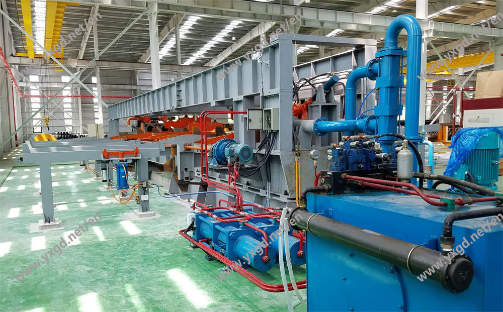 三、设备结构:设备机座、止推板、压紧推板、平衡压力大梁、主油缸压力机头、钢管托料装置、液压控制系统、电控柜、操作台(触摸屏)、水压控制系统、PLC编程智能控制系统等组成。