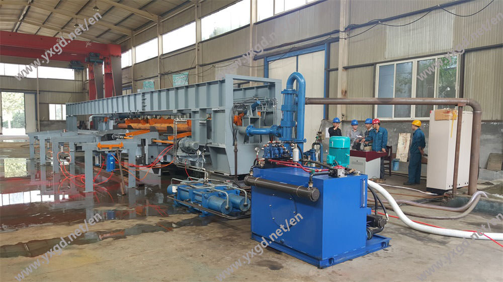 设备采用可升降托辊装置托住被试钢管,利用主油缸的推力将钢管压紧在止推板和压紧推板之间,使钢管两端管口密封(端封或径封)。依靠大流量低压泵完成进水,再利用高压泵完成高压试验。